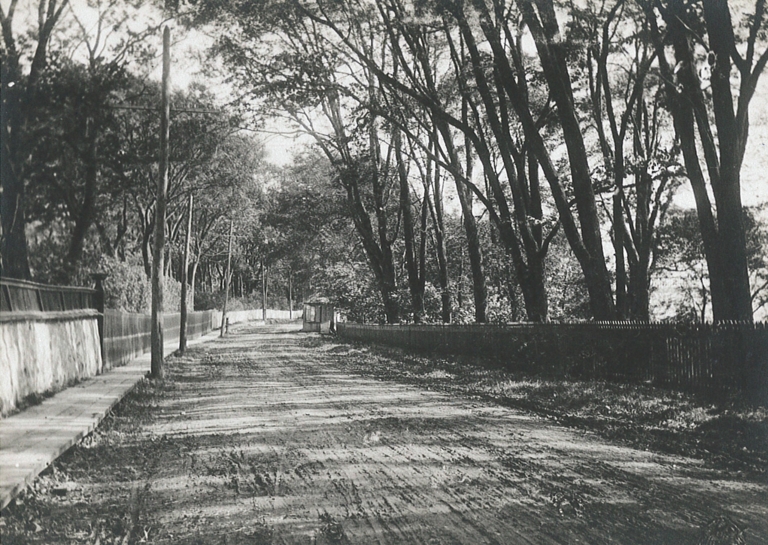 Vue du boulevard Lasalle vers 1900, à l’entrée de Lachine et en face de la Maison Le Ber-Le Moyne.