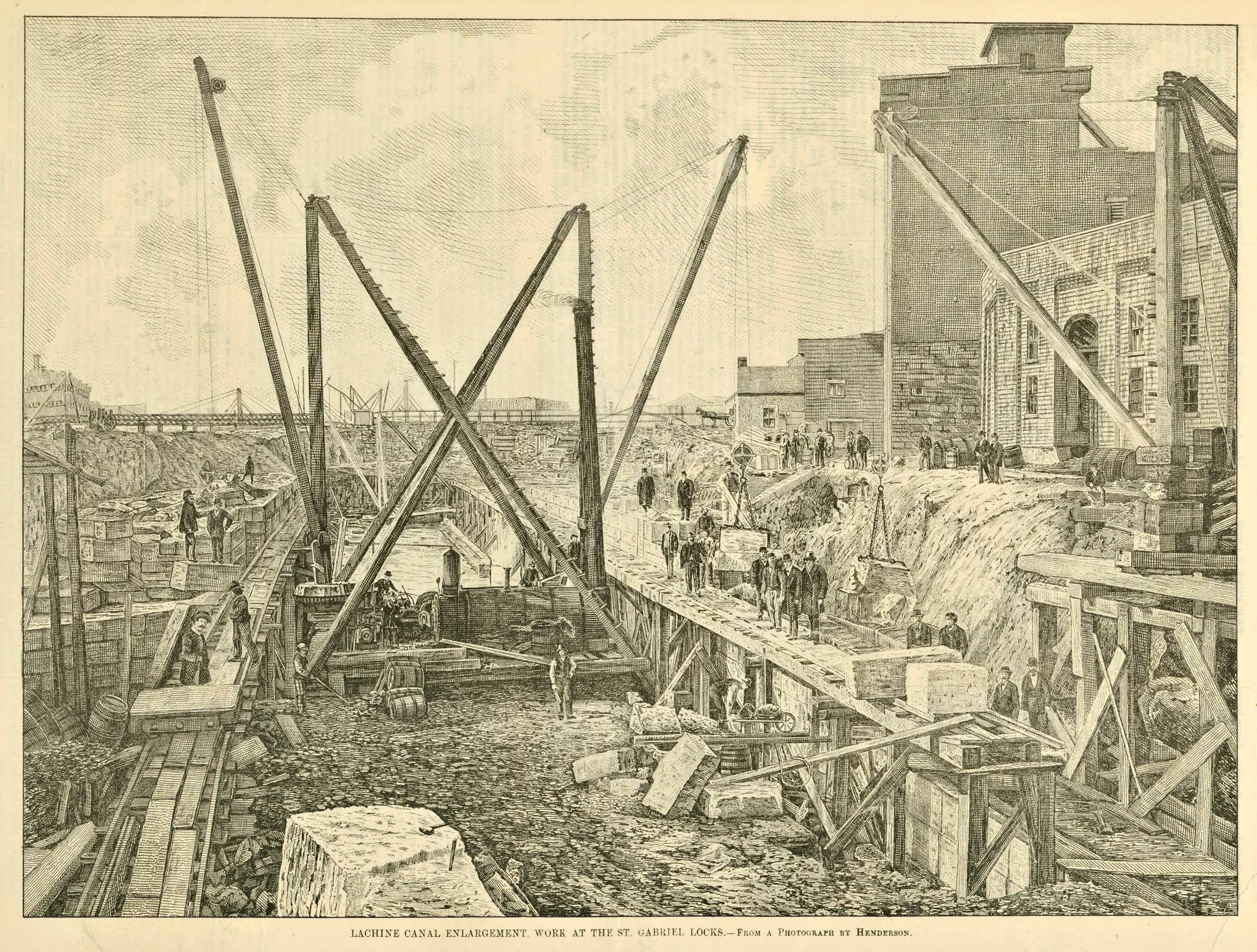 Agrandissement du canal de Lachine – Travaux à l'écluse Saint-Gabriel 1ᵉʳ décembre 1877, 19ᵉ siècle